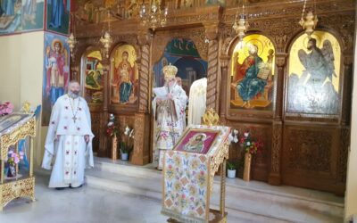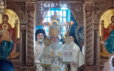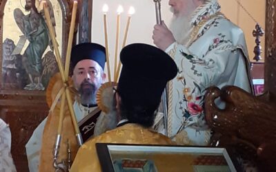 Ему сослужили Митрополит Назаретский Кириак и Митрополит Еленопольский Иоаким, архимандриты Нектарий, Матфей и Серафим, иереи Николай и Нектарий, архидиакон Марк.